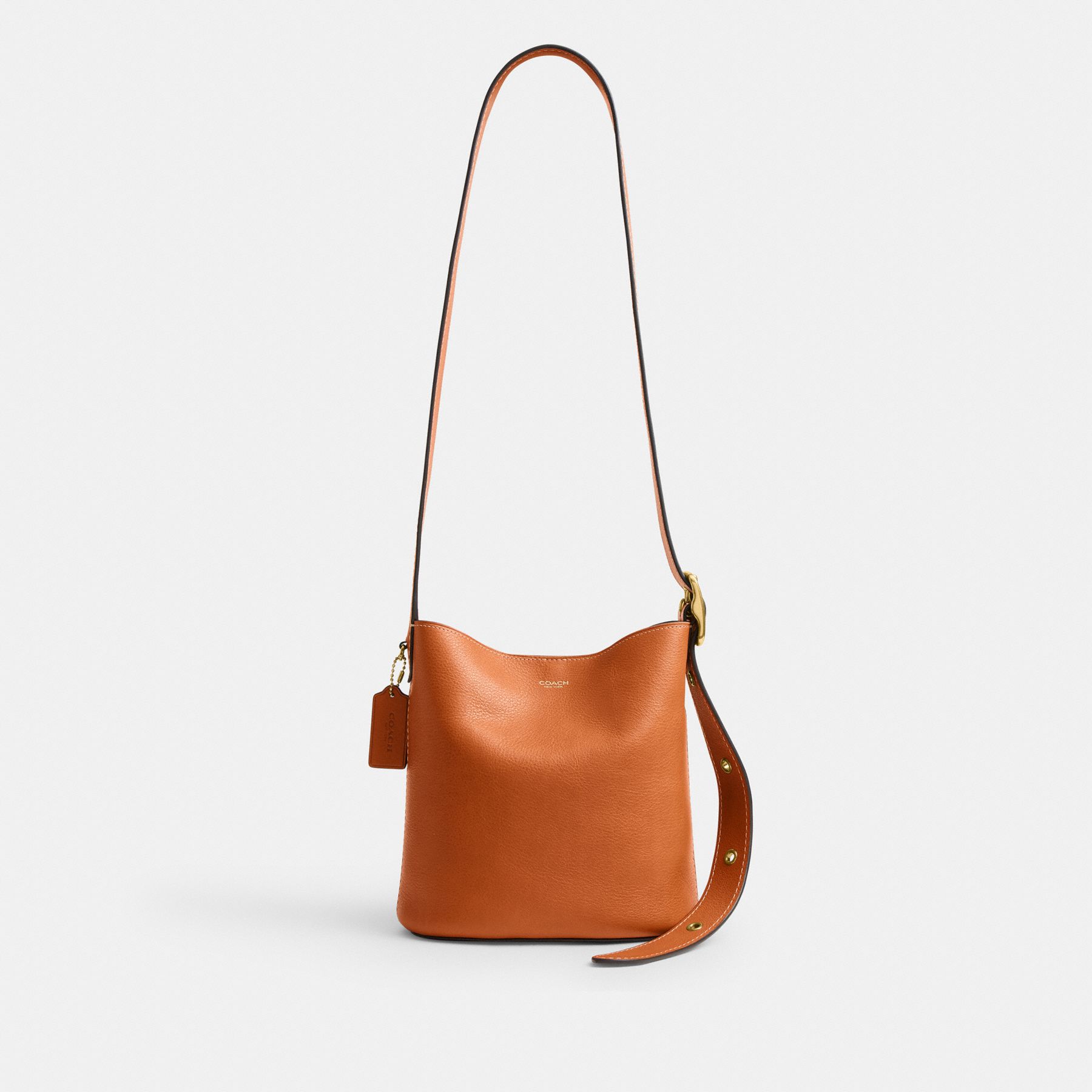 A 小巧malist elegant design, our Bleecker Bucket Bag is an everyday style with an undeniably sophisticated New York attitude. Crafted of natural grain leather with beautiful texture and soft feel, the compact 21 secures with our dogleash clip closure and has a wide adjustable shoulder strap to wear comfortably on the shoulder. It’s finished with an inside snap pocket and a convenient removable zip pouch to organize small essentials.